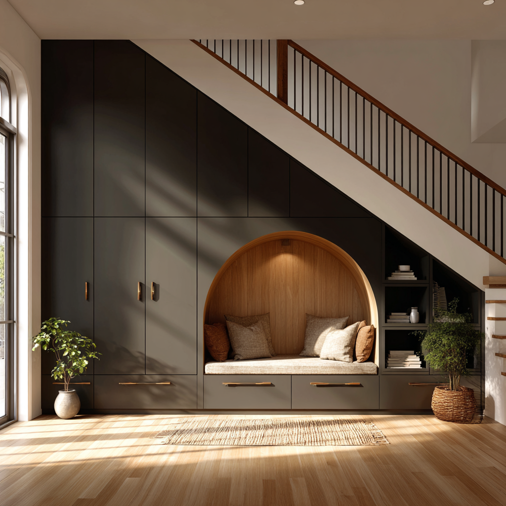 Soms wil je nét iets verder. Een doorlopend lijnenspel, een kast die overgaat in een wand, of een lege ruimte die gebruikt kan worden als opbergruimte. Daarom maken we ook interieurelementen op maat. Van wandpanelen tot opbergmeubels en andere details die het geheel compleet maken.